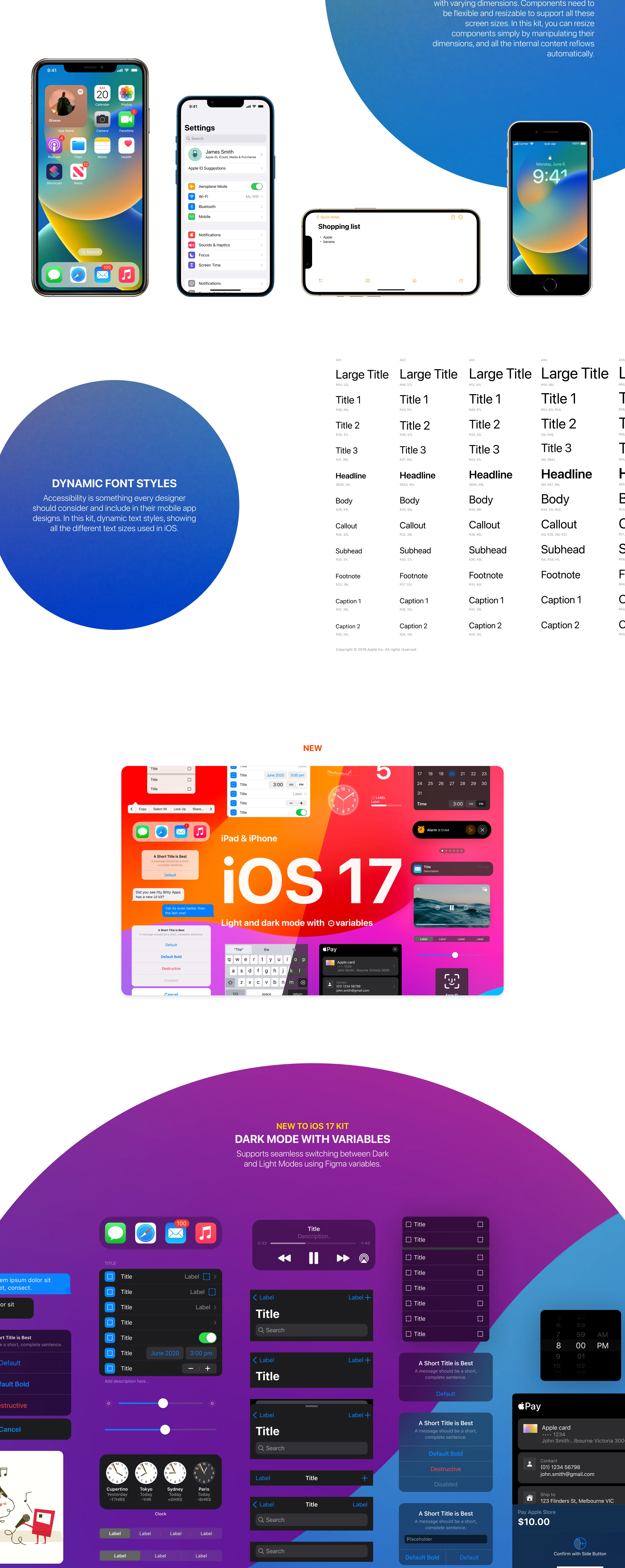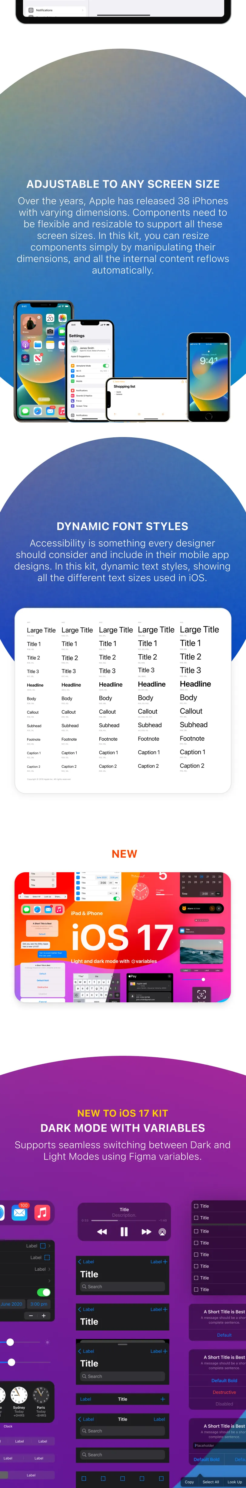 In 2023, we released a follow-up kit for iOS 17, featuring up-to-date components and the ability to switch between Dark and Light Modes using variables.