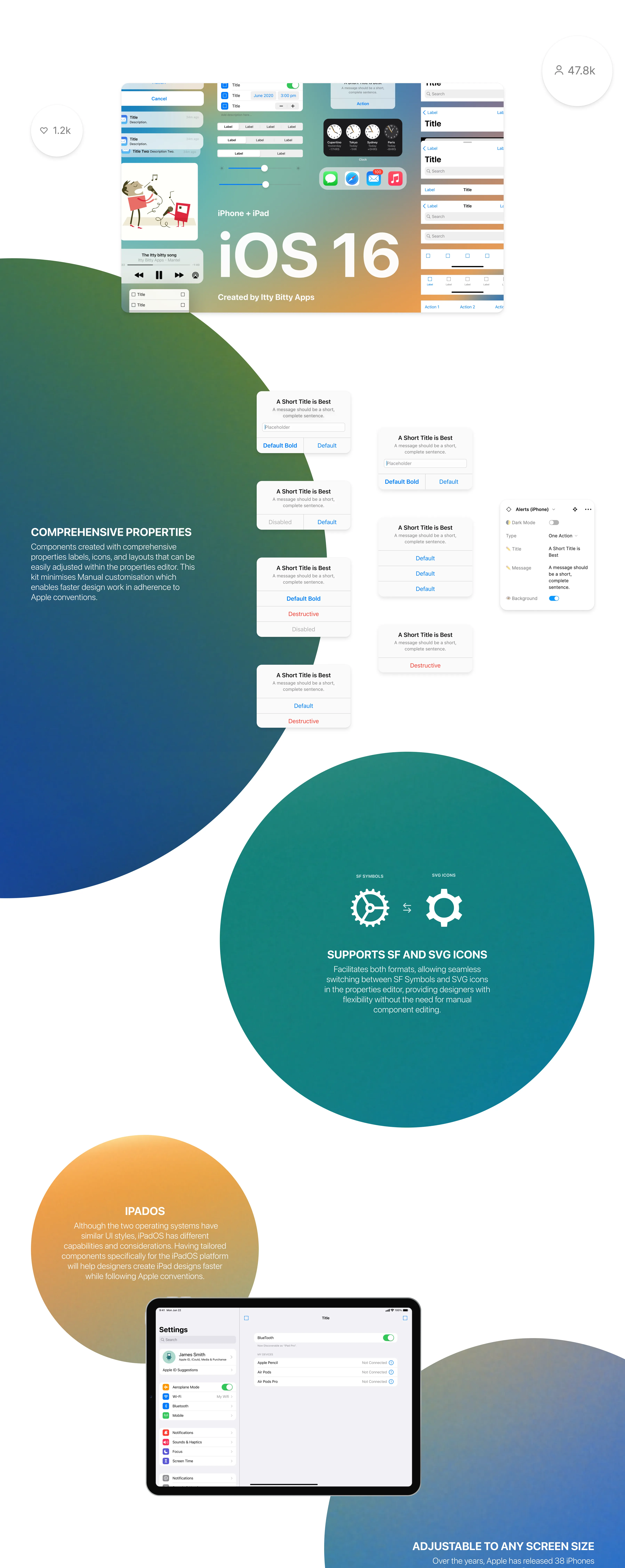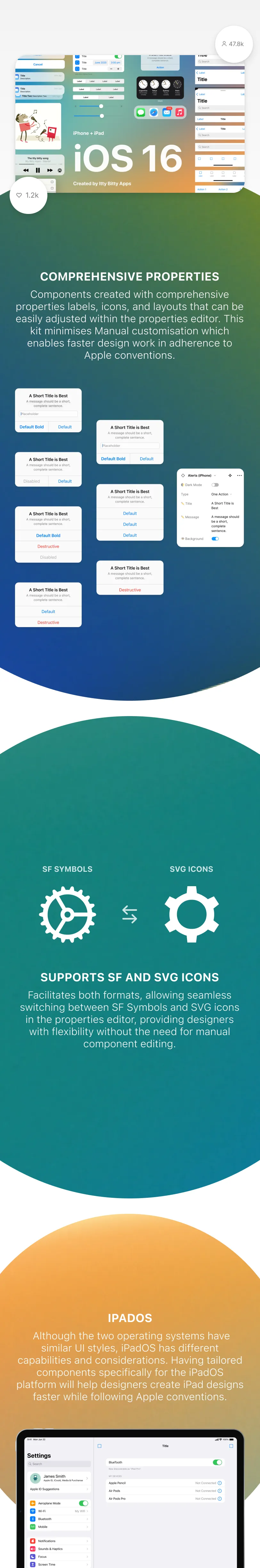 There are other iOS 16 kits available in the Figma community, but our team always felt these kits could be more user-friendly and complete. We needed more detail, flexibility and comprehensiveness. By creating our own, we set out to expand and improve on many of the deficiencies we saw in the other kits.